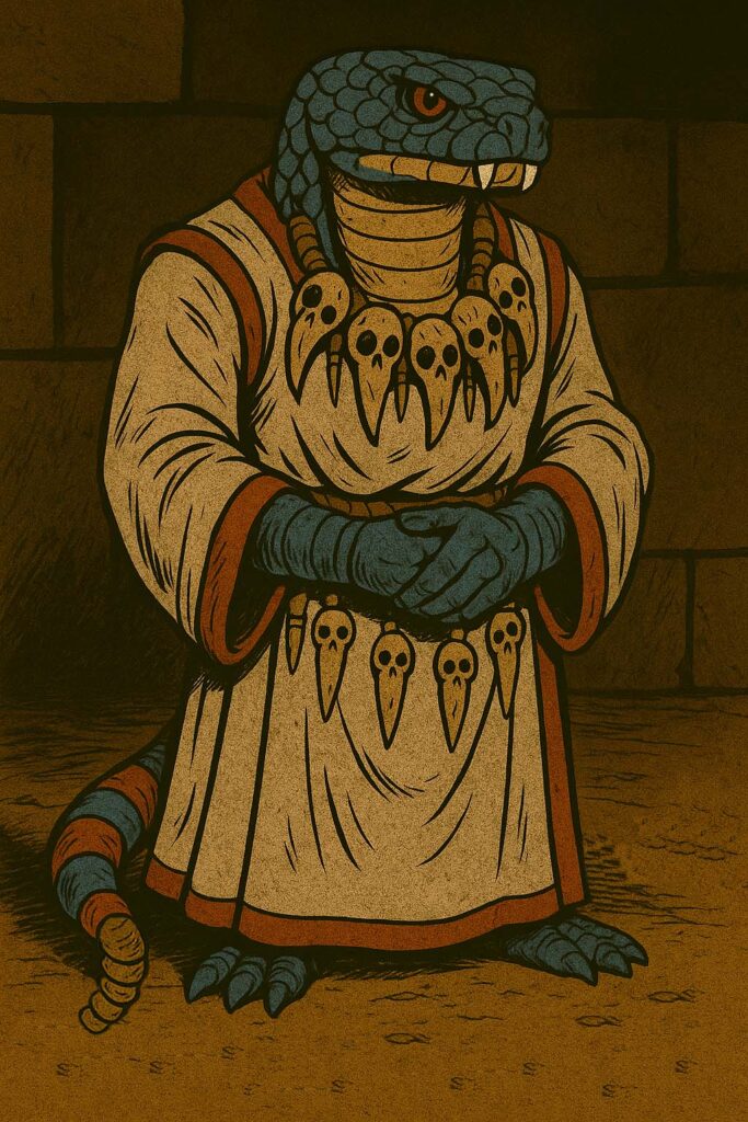 The last of the Snake Guard filed out through the chamber’s arched entrance, their footsteps echoing against ancient stone before fading into the temple’s deeper corridors. Each warrior offered a respectful nod to Dr. Ophidian as they passed—acknowledgment of his authority in this sacred space, even as uncertainty clouded their eyes.