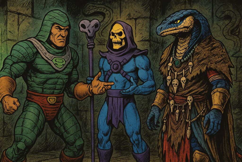 At the chamber’s heart, only four figures remained in the circle of amber light: King Hiss, Dr. Ophidian, the shadow that would soon manifest as Skeletor, and the consciousness that had once been Kobra Khan.