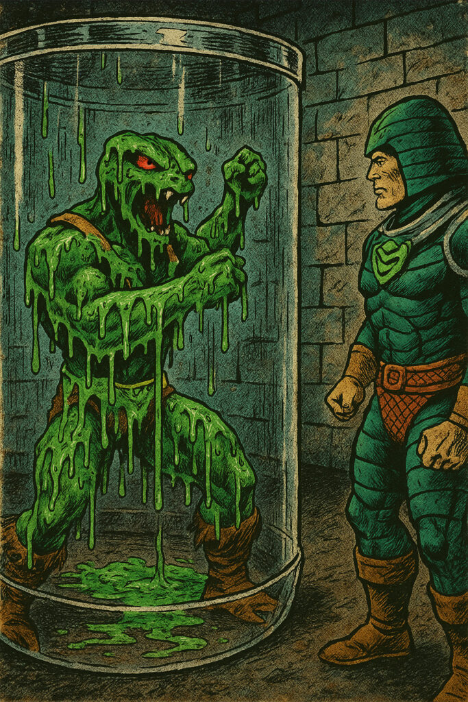 In Tales of the Snake Men: Book Three – Chapter 7, the Chamber of Renewal becomes a battlefield of pure deception as Kobra Khan’s stolen body turns the Slime’s favorite weapon—love—against King Hiss.